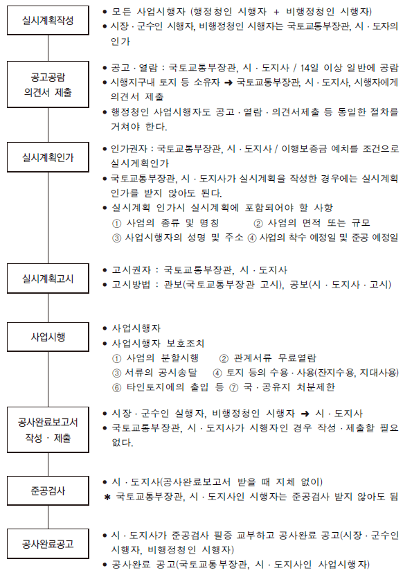 도시, 군계획시설사업 진행절차