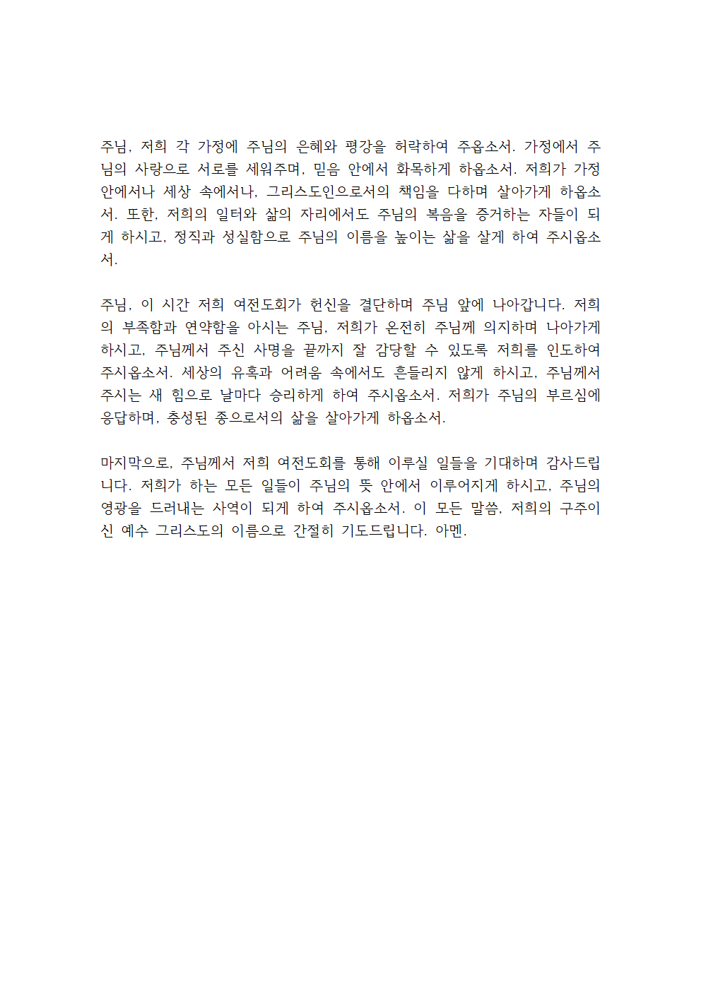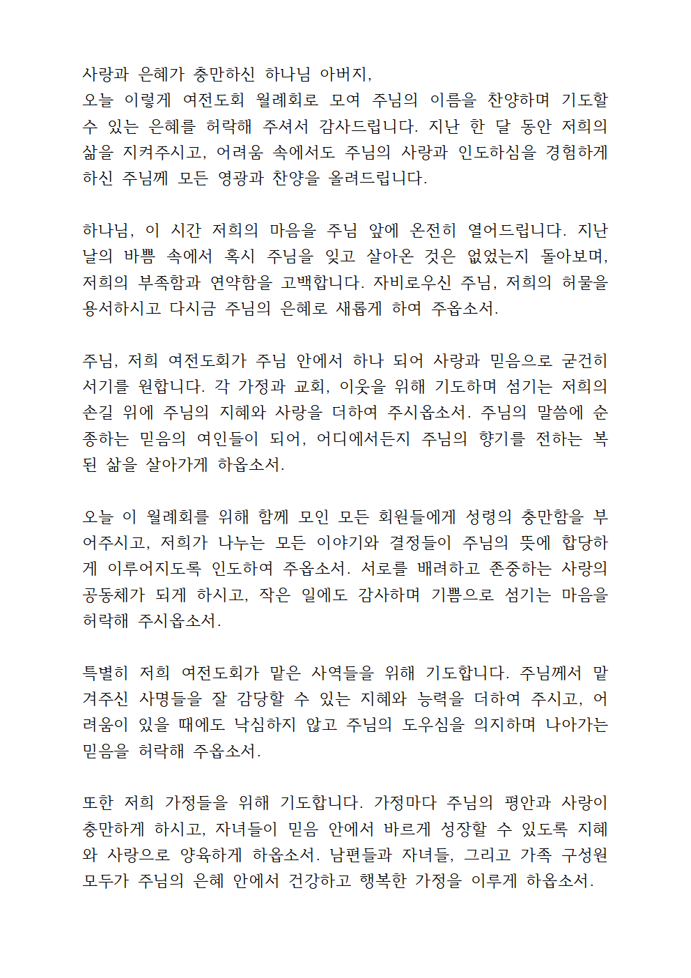 여전도회 월례회 기도문