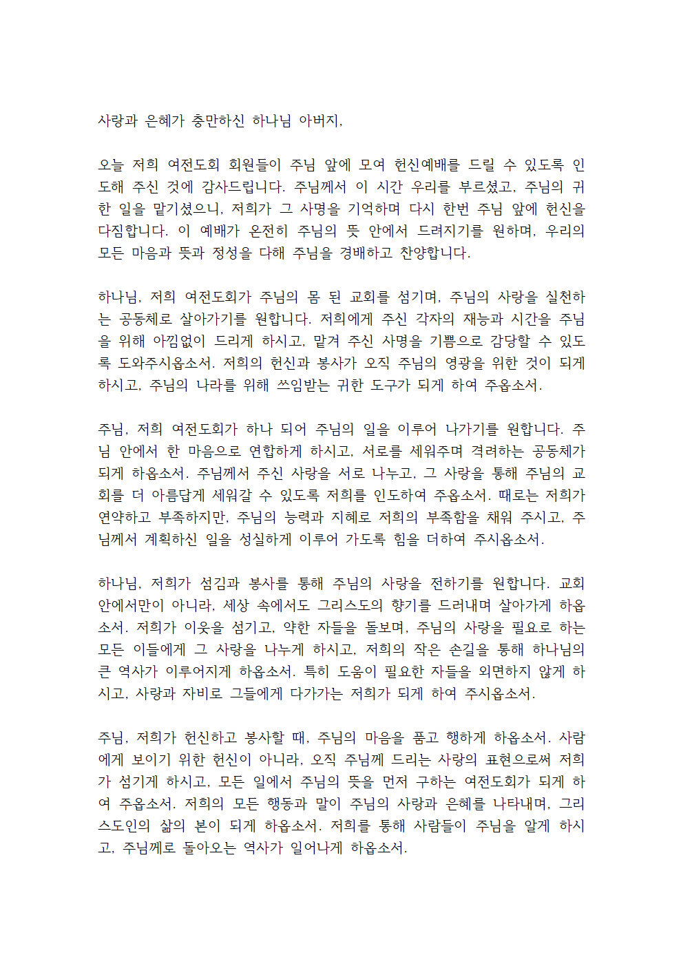 여전도회 헌신예배 기도문