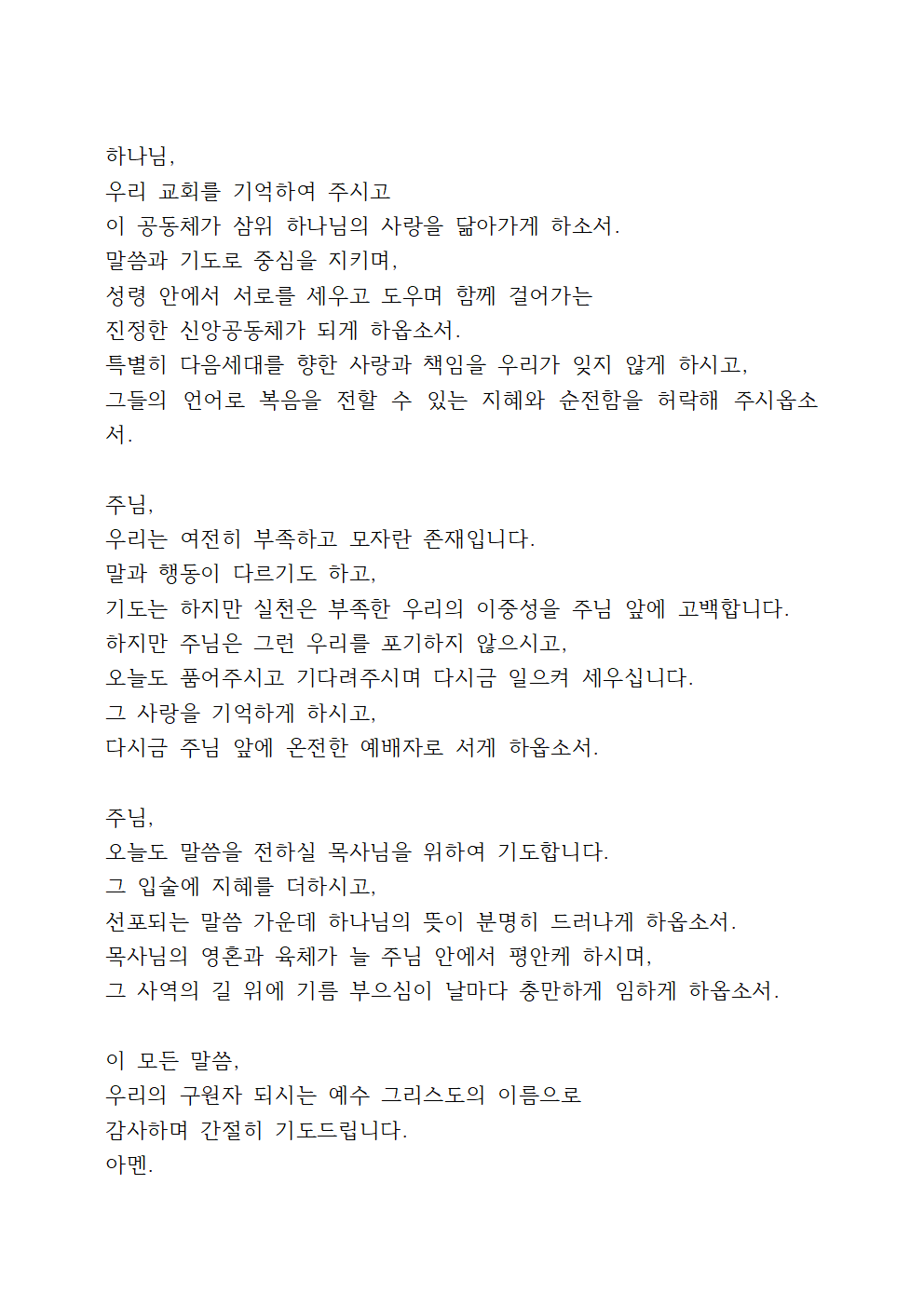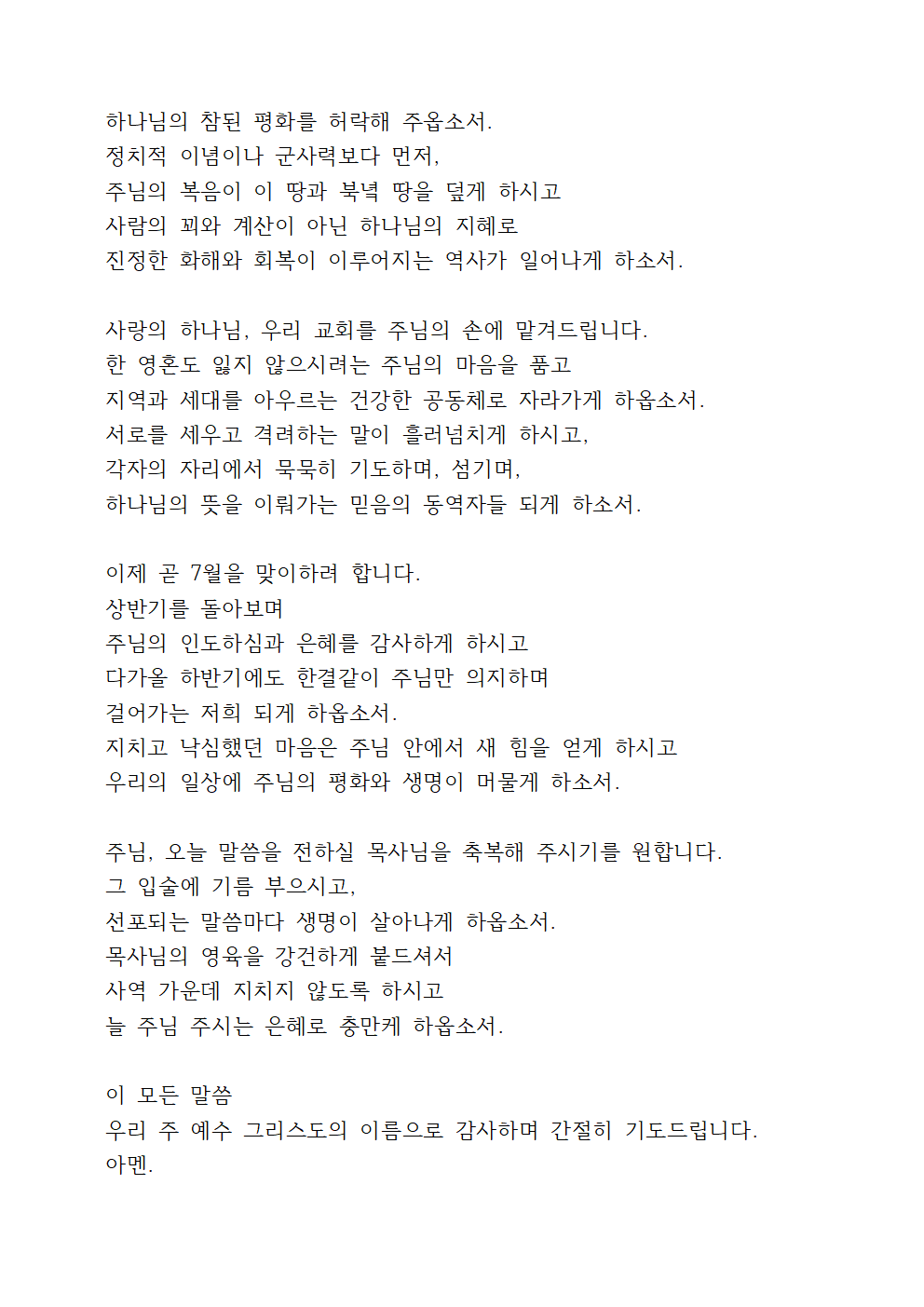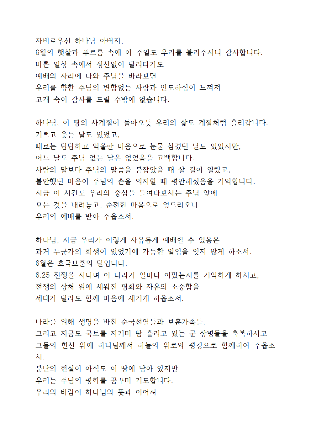 이번 글에서는 주일 대표기도문 (6월)을 안내해 드리겠습니다.