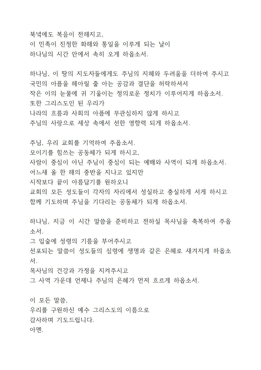 우리나라를 위한 기도문