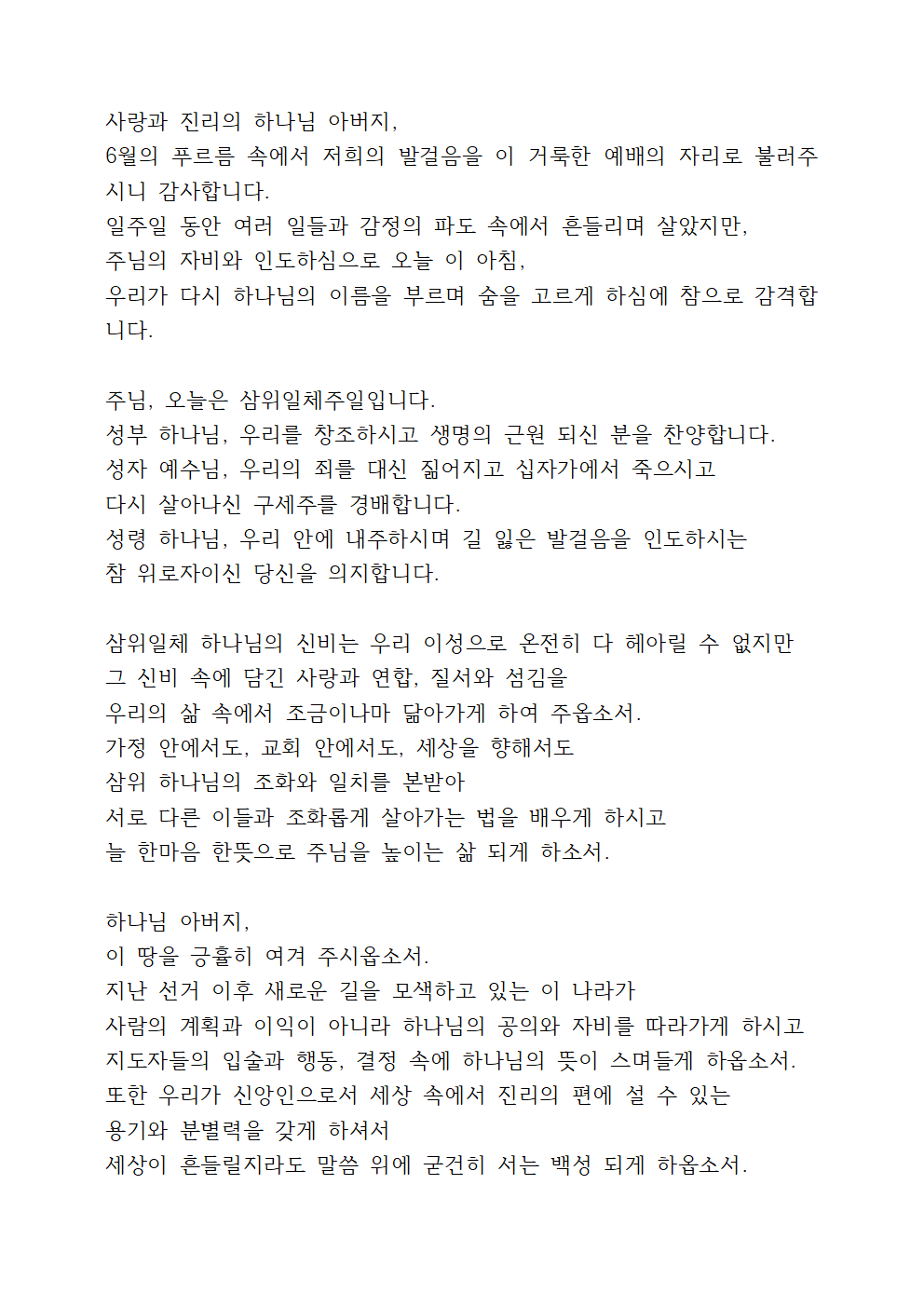 주일 대표기도문 6월