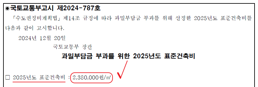 과밀부담금 부과를 위한 2025년도 표준건축비