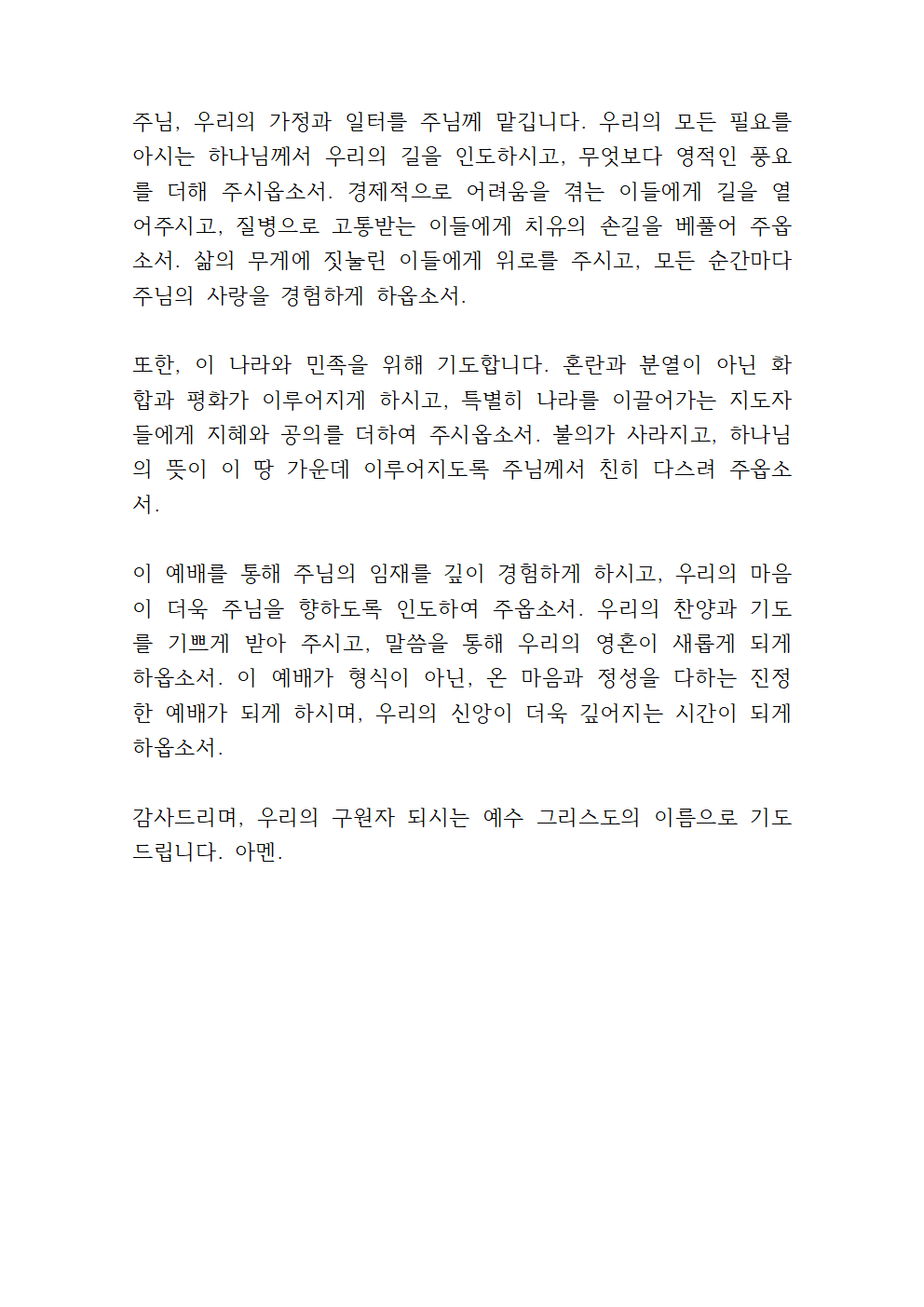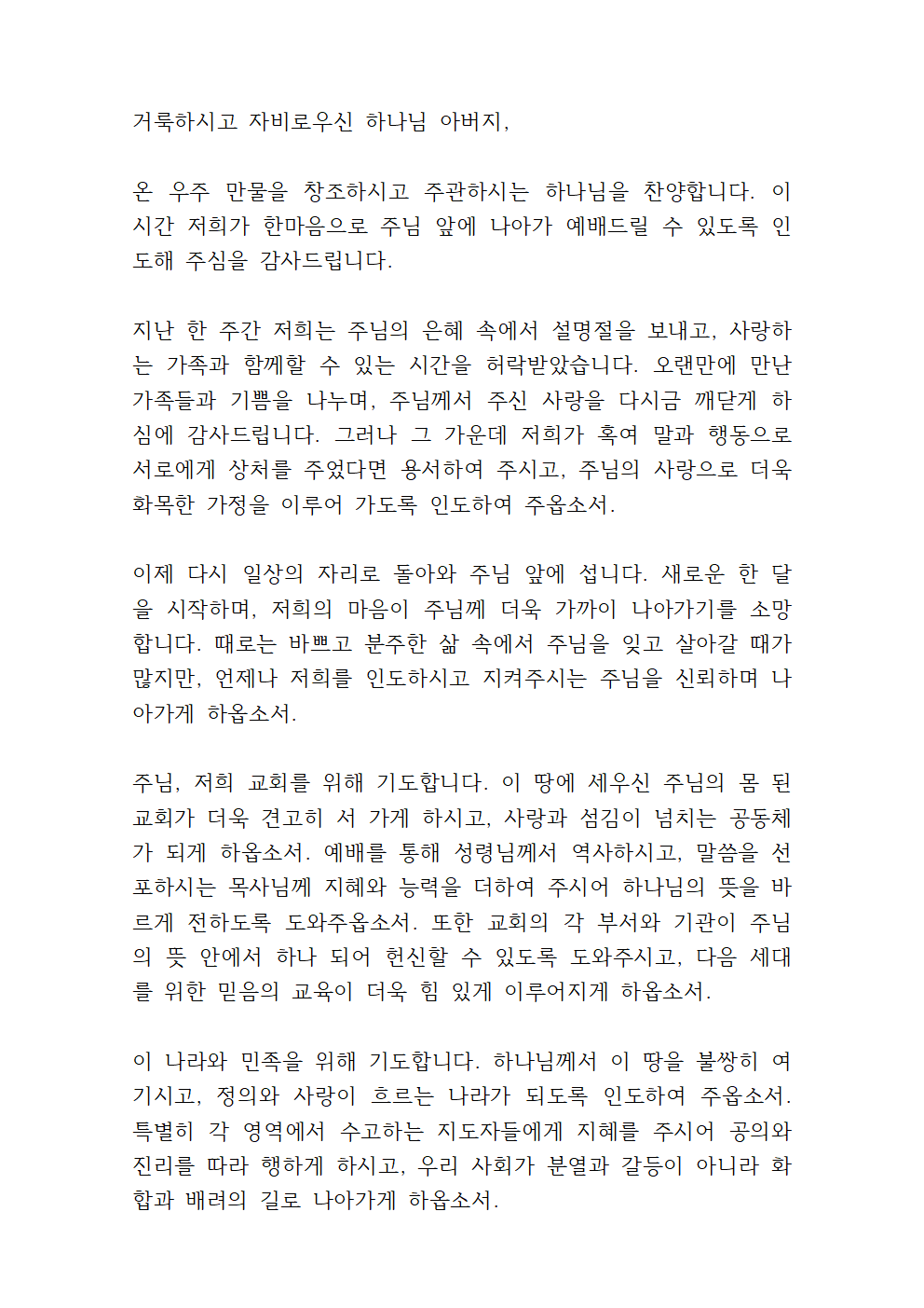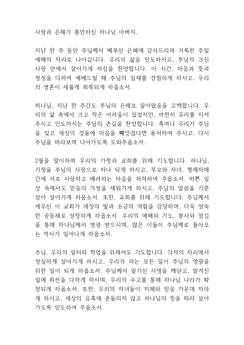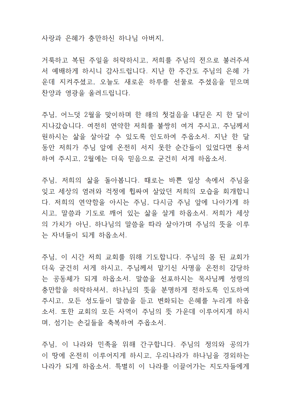 '2025년 2월 첫째 주일 낮예배 대표기도문 (6 가지)'