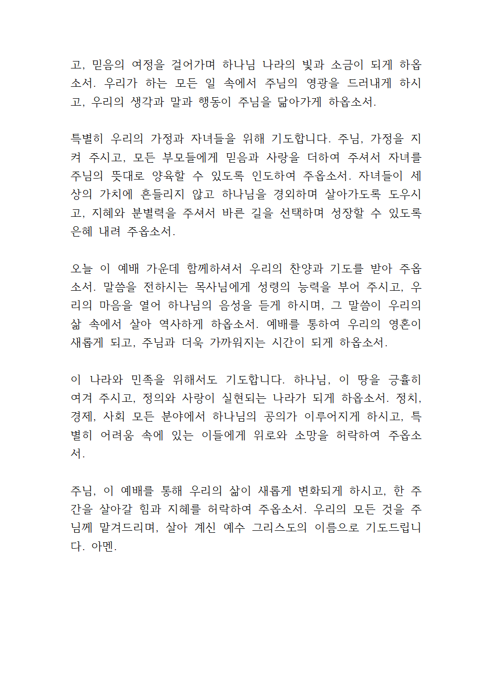이 모든 말씀을 우리 구주 예수 그리스도의 이름으로 간절히 기도드립니다. 아멘.