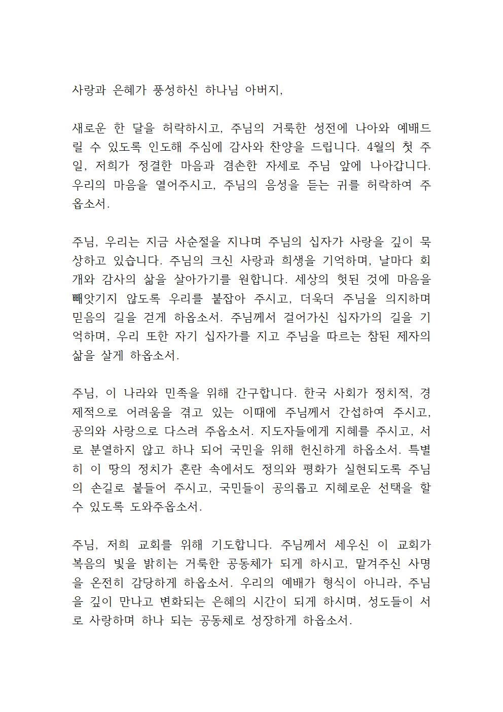 '2025년 4월 주일낮예배 대표기도문 모음 (pdf 파일 포함)'