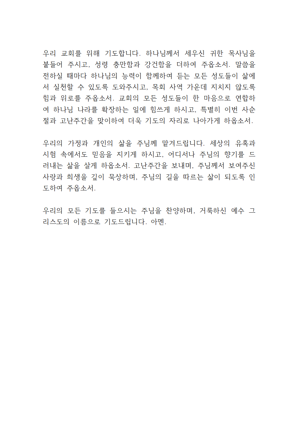 이번 글에서는 2025년 4월 주일낮예배 대표기도문 모음 (pdf 파일 포함)을 안내해 드리겠습니다.