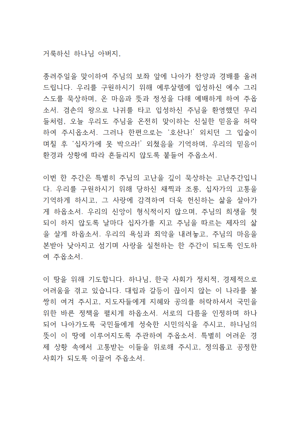 4월 주일낮예배 대표기도문 2 (종려주일)