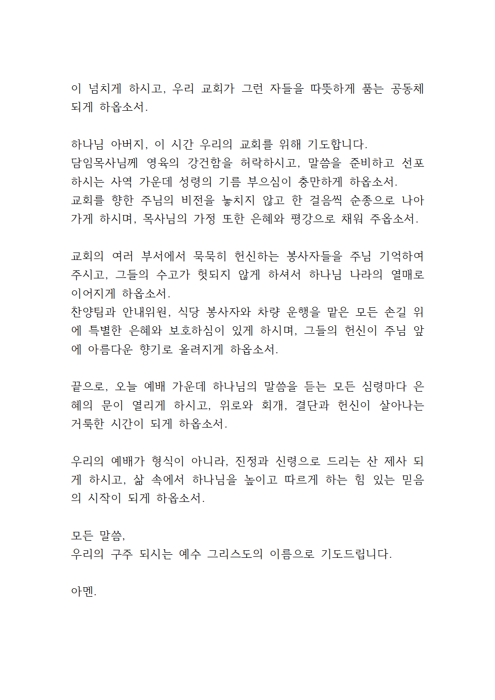 이번 글에서는 2025년 8월 둘째주일 대표기도문을 안내해 드리겠습니다.