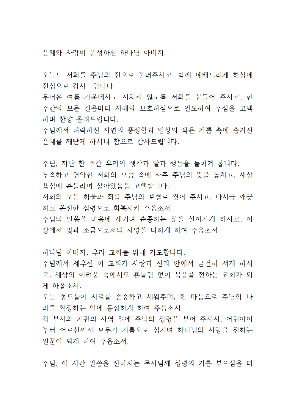 7월 넷째주일예배 대표기도문 (pdf)